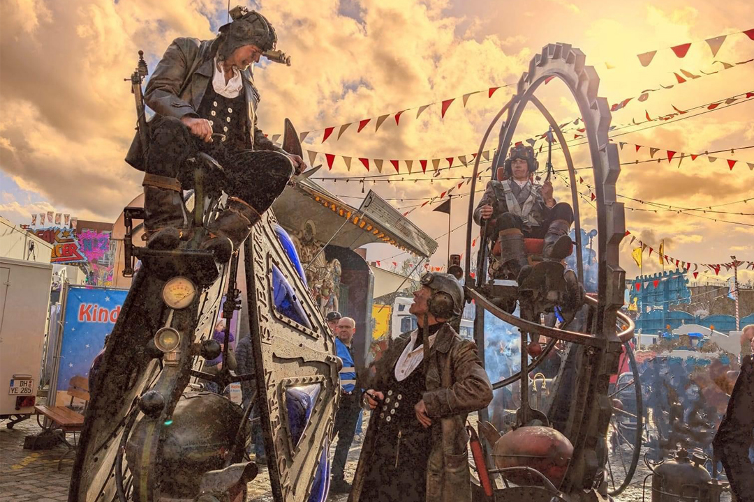 Wil je vuur, rook, muziek en te gekke voertuigen die zo uit een andere tijdperk lijken te komen? Dan zit je in hal 12 goed. Daar bulderen de Steamroadsters door de hal met hun machines en eigenzinnige piloten.